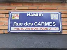 - Rue des Carmes et quartier des Carmes à Namur ;