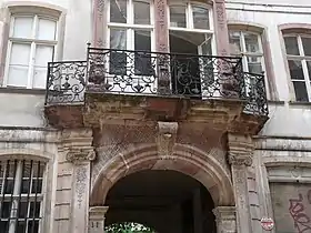 - À l'angle de la rue du Faisan, cette grande maison bourgeoise remaniée au XVIIIe siècle, au moment où le style Régence commence à s'imposer, comporte une façade de trois étages dont les fenêtres ont des chambranles à crossettes et des appuis galbés. Le portail est plein cintre avec un appareil de bossage en diamant[5]. Le rez-de-chaussée a été refait en 1924[4].