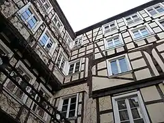 - L'ancien « poêle » (siège de la corporation) des Maçons y était installé de 1506 à 1790. Reconstruit, l'immeuble abrite le siège de la Réunion des Arts de 1799 à 1854, puis la résidence et la chapelle des Jésuites de 1854 à 1899, et enfin, depuis 1909, le foyer de la cathédrale (Münsterhof[6]). Il conserve un portail avec un arc en plein cintre reposant sur deux colonnes cannelées[1] et engagées, qui se rattachent à l'esthétique du XVIIe siècle[5].