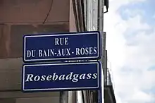 Des plaques de rues bilingues, à la fois en français et en alsacien, sont mises en place par la municipalité à partir de 1995[2]. C'est le cas de la Rosebadgass.