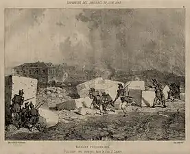 Le 23 juin 1848, la barrière Poissonnière est l'enjeu de rudes combats entre les insurgés, barricadés dans les bâtiments, et les troupes gouvernementales.