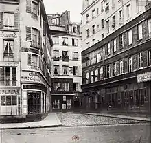 Après la destruction d'une partie de l'église Saint-Denis en 1800, la rue est élargie en partie dans son débouché dans la rue de la Lanterne. Cette partie forme alors une placette triangulaire[6]. Le grand magasin À la Belle Jardinière est construit au sud de cette partie de la rue, à l'angle avec la rue de la Lanterne[7].
