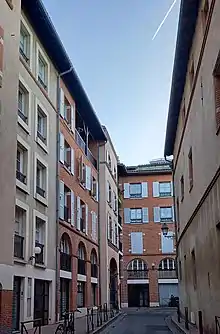 La rue du Prieuré du côté de la rue Peyrolières | |