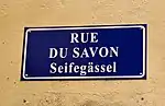 À partir de 1995, des plaques de rues bilingues, à la fois en français et en alsacien, sont mises en place par la municipalité lorsque les noms de rue traditionnels étaient encore en usage dans le parler strasbourgeois[5]. La rue est ainsi sous-titrée Seifegässel.