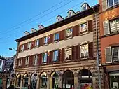 - À l'angle avec le no 2 de la rue du Sanglier, l'édifice conserve quelques éléments datant du Moyen Âge[2]. Un restaurant, Zum goldenen Lamm, y est mentionné en 1686[7].