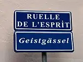 Des plaques de rues bilingues, à la fois en français et en alsacien, ont été mises en place par la municipalité à partir de 1995[5]. C'est le cas du Geistgässel.