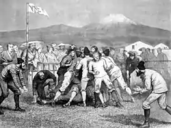 Le rugby fait son apparition au Japon lorsque le pays sort de son isolationnisme avec la restauration de Meiji en 1868[4],[5]. Les villes portuaires de Yokohama et de Kobe notamment, se développent grâce à leur ouverture aux marchands étrangers, notamment anglo-saxons. Ces derniers sont d'ailleurs de plus en plus nombreux à venir résider dans ces villes, notamment Yokohama, qui devient une grande ville cosmopolite de l'archipel. Apparaissent alors des matchs amateurs de rugby entre étrangers, mais les Japonais ne le pratiquent pas encore. La première mention d'un match de rugby, entre officiers de la marine et commerçants britanniques, date de 1868[4],[5].