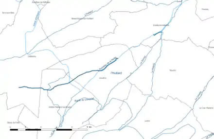 Son bassin versant correspond à la zone hydrographique « l'Huillard de sa source au confluent de la Bezonde (exclu) (F424) », au sein du bassin DCE plus large « La Seine et les cours d'eau côtiers normands ». Ce dernier s'étend sur 181 km2[1]. Il est constitué à 65.33 % de « territoires agricoles », 32.18 % de « forêts et milieux semi-naturels » et à 1.82 % de « territoires artificialisés »[1].