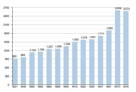 - Sources : INS, Rem. : 1831 jusqu'en 1970 = recensements, 1976 = nombre d'habitants au 31 décembre.