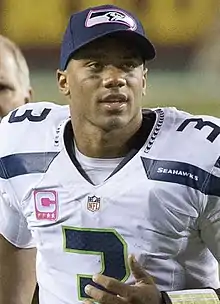 Russell Carrington Wilson, né le à Cincinnati dans l'Ohio, est un sportif professionnel américain de football américain évoluant au poste de quarterback dans la National Football League (NFL) depuis la saison 2012.