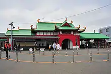 La gare de Katase-Enoshima à Fujisawa, dans la préfecture de Kanagawa, est conçue de manière à évoquer le Ryūgū-jō.