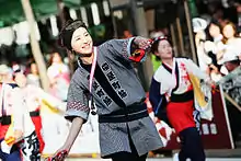 Actrice japonaise Ryoko Hirosue exécutant une danse au Festival Kochi Yosakoi à Kochi, Japon.