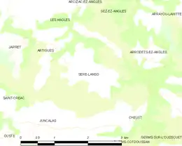 Sère-Lanso est limitrophe de six autres communes dont Saint-Créac au sud-ouest par un simple quadripoint.