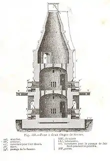 Les fours se composent d'un corps cylindrique séparé en trois niveaux, celui du bas dénommé premier laboratoire (diamètre 2,60 m hauteur 3 m), au milieu le second laboratoire (diamètre 2,60 m hauteur 2 m), et en haut le cône de cheminée (2 m). L'alandier est une ouverture dans le bas du premier laboratoire (hauteur 1 m, largeur 0,58 m et profondeur 0,29 m)[22].