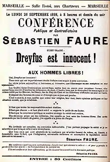Début 1898, poussé par Bernard Lazare, Sébastien Faure et l'équipe du Libertaire furent les premiers, dans le mouvement anarchiste, à s'engager dans l'Affaire Dreyfus, en livrant bataille contre l’Église, l'institution judiciaire, l'armée et le mouvement antisémite[3].