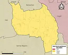 Le retrait-gonflement des sols argileux est susceptible d'engendrer des dommages importants aux bâtiments en cas d’alternance de périodes de sécheresse et de pluie. La totalité de la commune est en aléa moyen ou fort (44,5 % au niveau départemental et 48,5 % au niveau national). Sur les 44 bâtiments dénombrés sur la commune en 2019, 44 sont en aléa moyen ou fort, soit 100 %, à comparer aux 75 % au niveau départemental et 54 % au niveau national. Une cartographie de l'exposition du territoire national au retrait gonflement des sols argileux est disponible sur le site du BRGM[24],[Carte 3].