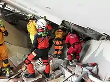Secouristes dans les ruines d'un immeuble.