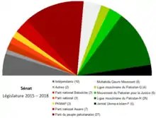 Les élections de 2015 se déroulent le et portent sur la moitié des sénateurs, soit 52 sièges sur un total 104. La Ligue musulmane du Pakistan (N) remporte largement ce scrutin, mais ne parvient pas à dépasser le Parti du peuple pakistanais, qui garde finalement un siège de plus dans la composition nouvelle du Sénat. Le Mouvement du Pakistan pour la justice, le Pashtunkhwa Milli Awami et le Parti national réussissent tous les trois à faire leur première entrée au Sénat, à la suite de leur bonne performance dans les assemblées provinciales électrices lors des élections législatives de 2013.