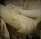 Complètement à gauche, Marie Salomé prépare un linceul qu'elle dispose dans le tombeau ; ce sont les objets qui étaient à l'origine destinés à Joseph d'Arimathie.