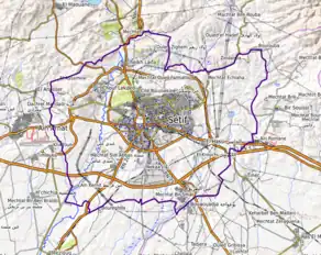 Sétif (prononcé [se.tif] ) (en arabe : سطيف ; en tamazight : ⵚⵟⵉⴼ (Ṣṭif)[3]) est une ville du nord-est de l'Algérie et le chef-lieu de la wilaya de Sétif. Il s'agit de l'une des villes les plus importantes d'Algérie ; elle est souvent considérée comme la capitale commerciale du pays. Située au sud de la région de la Petite Kabylie, à 252 km à l'est-sud-est d'Alger, à 70 km à l'est-nord-est de Bordj Bou Arreridj, à 283 km à l'ouest-sud-ouest de Annaba et à 127 km à l'ouest de Constantine, la ville culmine à 1 100 m d'altitude.