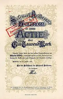 Salzwerk Heilbronn AG est fondé en 1883 par un consortium de banques du Württemberg et de Francfort. Il gère d’abord Saline Bad Friedrichshall à Jagstfeld. En 1885 débute l’exploitation du sel gemme à Heilbronn. Après avoir dû abandonner le puits de la saline à Jagstfeld à cause d’une intrusion d’eau, on installe en 1899 à Kochendorf, sous la supervision d’August Bohnert le nouveau puits „König Wilhelm II“. Dans ce puits, on fabrique des matières explosives de 1913 à 1915 sous concession la société berlinoise Miedziankit GmbH[3]. En qualité de succursale, la Glashütte Heilbronn (verrerie de Heilbronn) est fondée le , capable d'utiliser les déchets de la production du sel pour la production de verre. Elle débute la production le , et fabrique avant tout des bouteilles de verre[4].