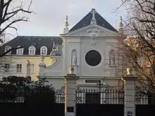 Seules restent en France les religieuses hospitalières non touchées par la loi. Expropriées de leur maison-mère (25 et 27 rue de Sèvres, démolie en 1908) pour permettre le percement du boulevard Raspail[2], les « Dames hospitalières de Saint-Thomas de Villeneuve » achètent dès 1907 l'aile subsistante du château de Neuilly à Neuilly-sur-Seine[3] pour y installer leur nouvelle maison-mère. La propriété comprend une chapelle vétuste qui est remplacée par la nouvelle chapelle Notre-Dame de Bonne Délivrance[4] (1908-1910, Maurice Humbert architecte) donnant boulevard de La Saussaye.