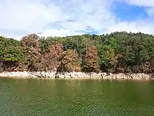 - le stress hydrique affecte les arbres, qui peuvent mourir si le déficit aggravé par la hausse de température se répète plusieurs années de suite[33] ;