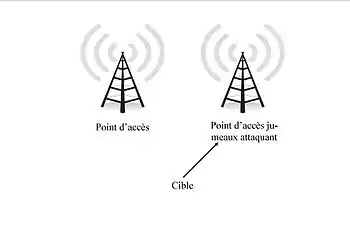 Beaucoup de smartphones se souviennent des réseaux Wi-Fi auxquels ils ont déjà été connectés, ce mécanisme permet d'éviter à l'utilisateur de s’identifier à chaque connexion. Cependant un attaquant pourrait créer un point d'accès Wi-Fi jumeau avec les mêmes paramètres et caractéristiques que le vrai réseau[10], en utilisant le fait que certains smartphones mémorisent les réseaux, ils pourraient confondre les deux réseaux et se connecter au réseau de l'attaquant qui pourra intercepter des données si celui-ci ne transmet pas ses données de manière chiffrée.