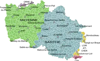 En 1789, la sénéchaussée principale du Mans était complétée par plusieurs sénéchaussées secondaires : Laval, Beaumont-le-Vicomte, Fresnay-le-Vicomte, Sainte-Suzanne, Mamers et Château-du-Loir.