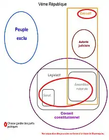 - le pouvoir judiciaire, confié aux juridictions, même si d'après la Constitution française de 1958 on ne parle pas de « pouvoir » mais d'« autorité » judiciaire.
