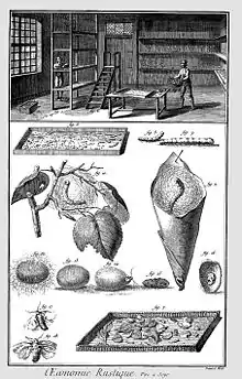 La sériciculture est l'élevage du ver à soie, qui est lui-même la chenille du papillon Bombyx mori. Elle consiste en l'ensemble des opérations de culture du mûrier, d'élevage du ver à soie pour l'obtention du cocon, de dévidage du cocon et de filature de la soie. L'élevage s'effectue à partir des œufs du papillon, appelés selon l'usage « graines ».