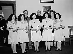 Les sœurs Dionne à Toronto en 1939, où elles furent présentées à la future reine Élisabeth II.