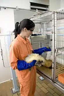 En mai 2020, les experts restent prudents sur ce sujet, car comme le rappelle alors l'académie de médecine en France, « le Sars-CoV-2 a pu être isolé chez plusieurs espèces animales, dont le chien viverrin, les chats ou infecter expérimentalement des furets et des rongeurs (cobayes et hamsters), le plus souvent sans signes cliniques »[29]. Début 2020, l'OMS (et divers experts), sur la base des premiers éléments disponibles, ont rapidement déclaré que rien n'indiquait que la maladie puisse se transmettre de l'humain à l'animal. Sur la base de données encore rares, ces experts et d'autres affirment alors que le virus ne toucherait que très peu les chiens et chats et que, le cas échéant, ces animaux présenteraient des taux d'excrétion et risques de contagion faibles.