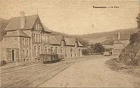 Pussemange | DSf | Pussemange | Namur | 49° 48′ 37″ N, 4° 52′ 15″ E | Hors service. | La gare et le dépôt sont distants de quelque 200 mètres du fait de la morphologie du terrain. |