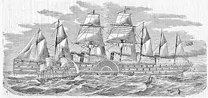 | Propulsion | Un moteur à vapeur à 4 cylindres oscillants pour les roues à aubes, un moteur à 4 cylindres pour l'hélice ; six mâts, 5 450 m2 de voile |