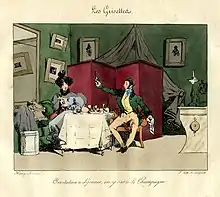 De son côté Marmontel, dans Le Philosophe soi-disant, se demandait dans un de ses Contes moraux « combien une femme de cinquante ans pouvait vivre encore en sablant tous les soirs sa bouteille de champagne », tandis que Mirabeau écrivait dans Le Libertin de qualité :