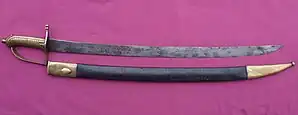 - fourreau : en cuir noir, avec deux garnitures laiton, chape à pontet