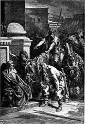 Après sept mois de siège, en proie à la famine, les assiégés finissent par négocier leur reddition contre le paiement d'une rançon fixée selon la tradition à 1 000 livres d'or, soit 330 kilogrammes d'or[1]. Le caractère peu glorieux de cet épisode est en partie atténué dans le récit traditionnel par l'attitude avide et provocante que les historiens antiques prêtent aux Gaulois et à leur chef Brennus[18]. Lors de la pesée de la rançon, les Gaulois auraient utilisé des poids truqués. Aux protestations romaines, Brennus aurait répondu de manière éloquente en ajoutant son épée aux poids incriminés, se justifiant du droit des vainqueurs par la phrase « Vae victis »[a 9].