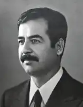 Saddam Hussein Al-Madjid (arabe : صدام حسين المجيد), communément appelé Saddam Hussein, est un homme d'État irakien, présumément né le à Al-Awja, près de Tikrit, et exécuté par pendaison le à Bagdad. Cinquième président de la république d'Irak, il occupe ce poste du au . Membre dirigeant du parti Baas arabe socialiste, il conserve sa position d'influence lors de la scission du parti et dirige la branche régionale irakienne de l'organisation. Dévoué à l'idéologie baassiste, qui combine socialisme arabe et nationalisme panarabe, Saddam Hussein joue un rôle déterminant lors du coup d'État du qui porte le parti Baas au pouvoir en Irak. Sa position de chef de l'état irakien et du Parti Baas irakien a fait de lui le chef de la faction pro-irakienne du parti Baas.