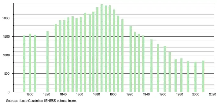 L'évolution du nombre d'habitants est connue à travers les recensements de la population effectués dans la commune depuis 1793. À partir du , les populations légales des communes sont publiées annuellement dans le cadre d'un recensement qui repose désormais sur une collecte d'information annuelle, concernant successivement tous les territoires communaux au cours d'une période de cinq ans.
