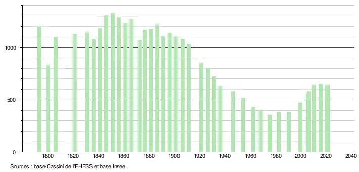 638 hab. (2021 en diminution de 1,54 % par rapport à 2015)