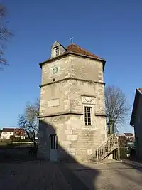 Au XVe siècle, Jean de Martigny, procureur, fit fortifier un franc-alleu par construction d'une tour et la mise en place de fossés et d'un pont-levis, à l'origine de la mairie actuelle. Une tour hexagonale, emblème de la commune actuelle, fut édifiée par Guillaume Tabourot au XVIe siècle dans la cour. Le pont-levis fut détruit au XVIIIe siècle.