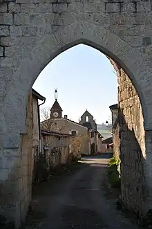 Le village est situé sur un éperon rocheux et a probablement été précédé, à l'époque féodale, par une motte castrale. La toponymie de la commune comprend d'ailleurs un lieu-dit La Motte, en dehors des remparts, juste au-dessus du village actuel[Note 8].