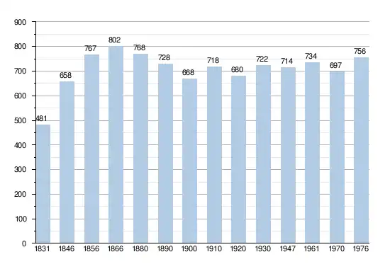 - Source: DGS, 1831 à 1970=recensements population, 1976= habitants au 31 décembre