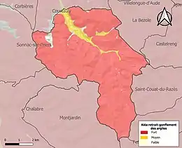 Le retrait-gonflement des sols argileux est susceptible d'engendrer des dommages importants aux bâtiments en cas d’alternance de périodes de sécheresse et de pluie. 98,3 % de la superficie communale est en aléa moyen ou fort (75,2 % au niveau départemental et 48,5 % au niveau national). Sur les 72 bâtiments dénombrés sur la commune en 2019, 71 sont en aléa moyen ou fort, soit 99 %, à comparer aux 94 % au niveau départemental et 54 % au niveau national. Une cartographie de l'exposition du territoire national au retrait gonflement des sols argileux est disponible sur le site du BRGM[18],[Carte 3].