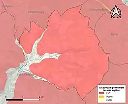 Le retrait-gonflement des sols argileux est susceptible d'engendrer des dommages importants aux bâtiments en cas d’alternance de périodes de sécheresse et de pluie. 92,3 % de la superficie communale est en aléa moyen ou fort (54,2 % au niveau départemental et 48,5 % au niveau national). Sur les 223 bâtiments dénombrés sur la commune en 2019, 152 sont en aléa moyen ou fort, soit 68 %, à comparer aux 57 % au niveau départemental et 54 % au niveau national. Une cartographie de l'exposition du territoire national au retrait gonflement des sols argileux est disponible sur le site du BRGM[13],[Carte 2].
