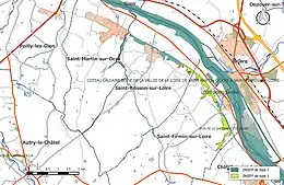 | « Vallée de la Loire du Loiret » | FR2410017 | ZPS (Directive "Oiseaux") | [31] | Le site de la « Vallée de la Loire du Loiret » s'étend sur 7 684 ha et concerne la vallée de la Loire dans le Loiret. Cette ZPS se poursuit en amont et en aval sur les départements voisins. L'intérêt majeur du site repose sur les milieux et les espèces ligériens liés à la dynamique du fleuve. Ces milieux hébergent de nombreuses espèces citées en annexe I de la directive Oiseaux. Le site est caractérisé par la présence de colonies nicheuses de sternes naine et pierregarin et de mouette mélanocéphale. Des sites de pêche du Balbuzard pêcheur sont également présents. Le site est également lieu de reproduction du bihoreau gris, de l'aigrette garzette, de la bondrée apivore, du milan noir, de l'œdicnème criard, du martin-pêcheur, du pic noir, de la pie-grièche écorcheur[INPN 4]. Elle se situe dans la frange nord de la commune[29]. |