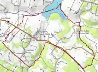 L'occupation des sols de la commune, telle qu'elle ressort de la base de données européenne d’occupation biophysique des sols Corine Land Cover (CLC), est marquée par l'importance des territoires agricoles (71 % en 2018), néanmoins en diminution par rapport à 1990 (72,8 %). La répartition détaillée en 2018 est la suivante : zones agricoles hétérogènes (45,2 %), prairies (24,5 %), forêts (22 %), eaux continentales[Note 3] (4,9 %), espaces verts artificialisés, non agricoles (2 %), terres arables (1,3 %)[20]. L'évolution de l’occupation des sols de la commune et de ses infrastructures peut être observée sur les différentes représentations cartographiques du territoire : la carte de Cassini (XVIIIe siècle), la carte d'état-major (1820-1866) et les cartes ou photos aériennes de l'IGN pour la période actuelle (1950 à aujourd'hui)[Carte 1].