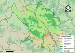 L'occupation des sols de la commune, telle qu'elle ressort de la base de données européenne d’occupation biophysique des sols Corine Land Cover (CLC), est marquée par l'importance des territoires agricoles (72,2 % en 2018), en augmentation par rapport à 1990 (70 %). La répartition détaillée en 2018 est la suivante : prairies (55,7 %), forêts (25,2 %), zones agricoles hétérogènes (16,5 %), zones urbanisées (2,6 %)[19].