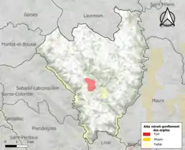 Le retrait-gonflement des sols argileux est susceptible d'engendrer des dommages importants aux bâtiments en cas d’alternance de périodes de sécheresse et de pluie. 1,2 % de la superficie communale est en aléa moyen ou fort (67,7 % au niveau départemental et 48,5 % au niveau national). Sur les 270 bâtiments dénombrés sur la commune en 2019, 1 sont en aléa moyen ou fort, soit 0 %, à comparer aux 72 % au niveau départemental et 54 % au niveau national. Une cartographie de l'exposition du territoire national au retrait gonflement des sols argileux est disponible sur le site du BRGM[24],[Carte 2].